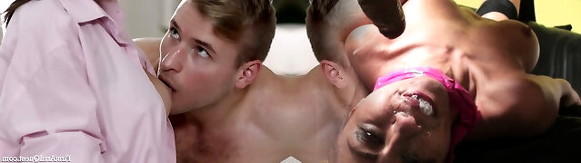 Threesome anal invasion double penetration fuck! Teen gets banged by new boyfriend and his bestie!