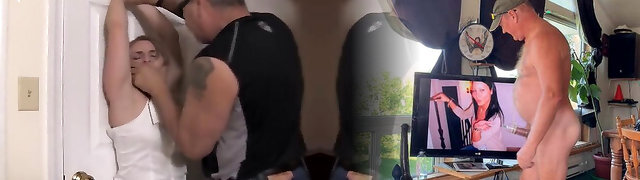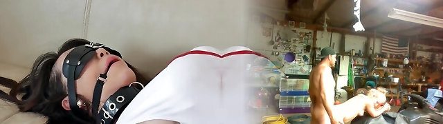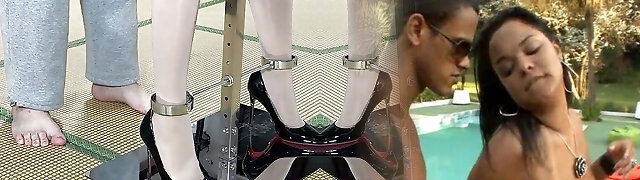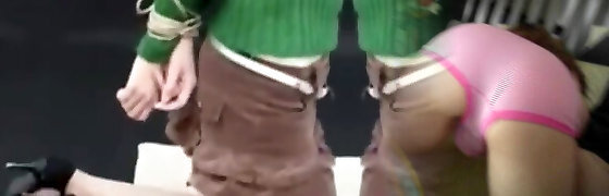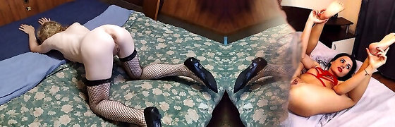 Wondrous Blonde Teen with perfect ass and small feet spanked hard in her shiny dark-hued bodystocking then fuck with a huge wood