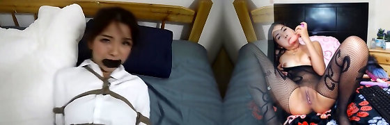 Multi Climaxes - BDSM test with horny vibrator and dildos of bedridden whore in pantyhose.XSanyAny
