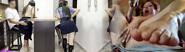 I masturbate my little stepsister while she cooks and I pulverize her hard hiding from our stepparents.