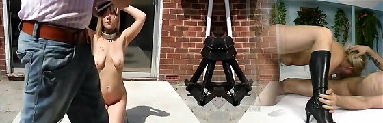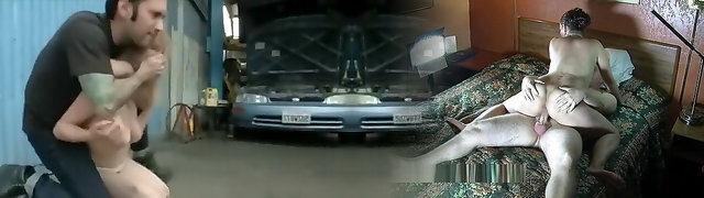 mechanic grabs blond bitch and binds her up and fucks her hard as slave