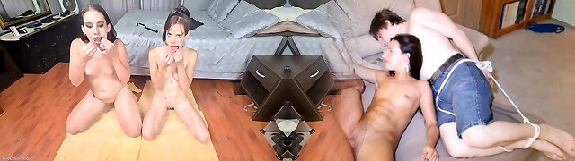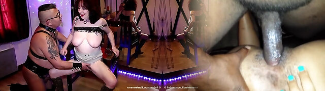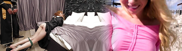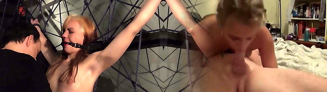 TEASER Laura is hogtied in latex catsuite and high heels, blown with a lip open gullet gag Point Of View