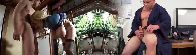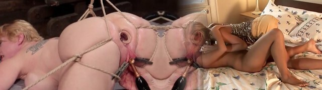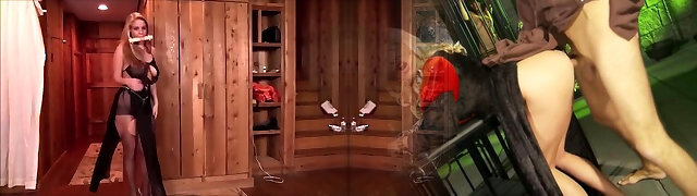 Fake Hostel - Slim blonde babe bound up and fucked by Futa MILF cock in bidy stocking with oral and pussy creampie climax