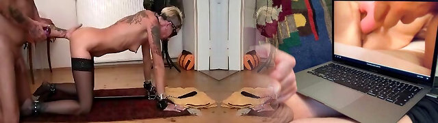 bisexual cuckold threesome with my cuckold hubby throating chisel while licking my nub and his friend fucks my pussy rough
