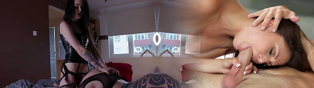 STRAP-ON SUCK foot fetish Kittling spandex submissive PVC fetish stocking nylon worship - Arya Grander and mod Fetishaura