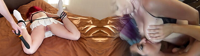 Instead of getting uncontrollable at her lover for cuckold the milf joins in for a nasty anal threesome